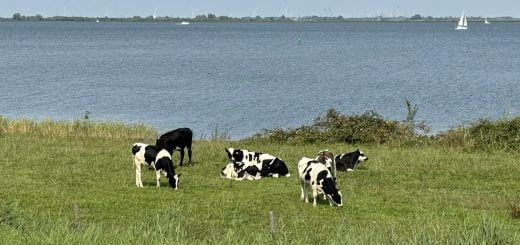 De fietstocht verliep best soepel, alleen tussen de Wezenspyk en Paardenhotel Texel werd het een bijzondere ervaring. Op de kaart stond een mooi lijntje als paadje, echter dat bleek een wel heel smal paadje. Zo smal dat je er eigenlijk niet kon lopen. Dus wij sjeesden er op onze fiets maar snel doorheen, zodat we eraf waren. Echter toen kwamen we bij een heel klein handbediend pontje dat duidelijk niet bedoeld was om (elektrische) fietsen mee te nemen. Maar ook die hindernis overwonnen we. De volgende hindernis maakten ons nog duidelijker dat we niet op een fietspad zaten… We kwamen van die hekjes tegen met een opstapje. Maar eigenlijk konden we niet meer terug en het was nog maar 600m naar de Pontweg, dus de fietsen maar over het hekje getild en over de dijk richting de Pontweg gefietst. Daar werd ons eindelijk duidelijk dat we er eigenlijk niet mochten fietsen, want bij het verlaten van het terrein stond een verbodsbord voor fietsers. Hadden we dat nou maar gezien aan het begin van dat pad…